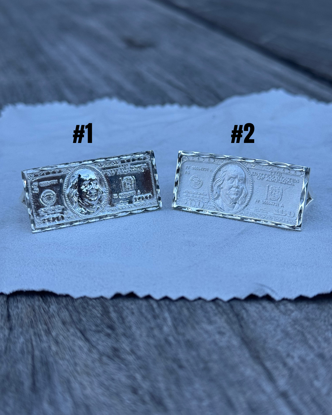 925 Silver Double Finger 100$ Bill Ring