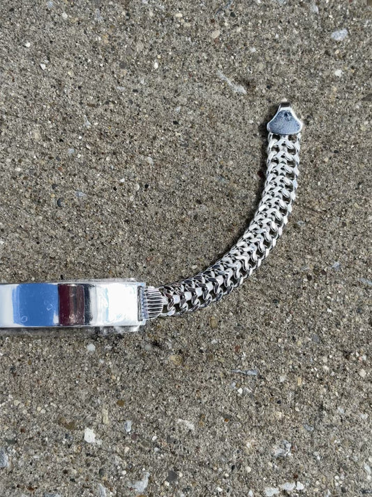 925 Sterling Silver 9MM Double Curb Link ID Bracelet