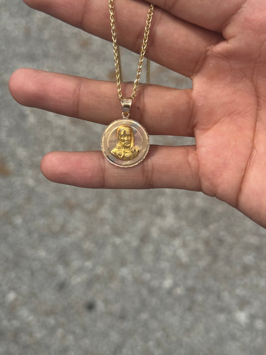 14K Tri Colored Jesus Medallion Pendant (20.73MM x 17.96MM)
