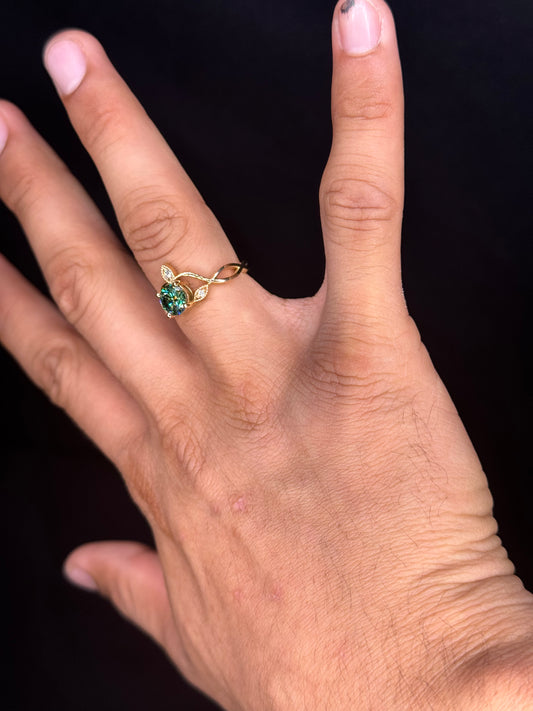 14K Yellow Gold Ring with Green Moissanite Center & .15 Ct Lab Diamond