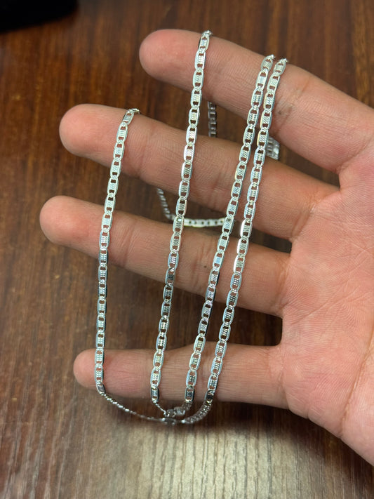 925 Sterling Silver 6 Sided Textured Valentino Chain Necklace