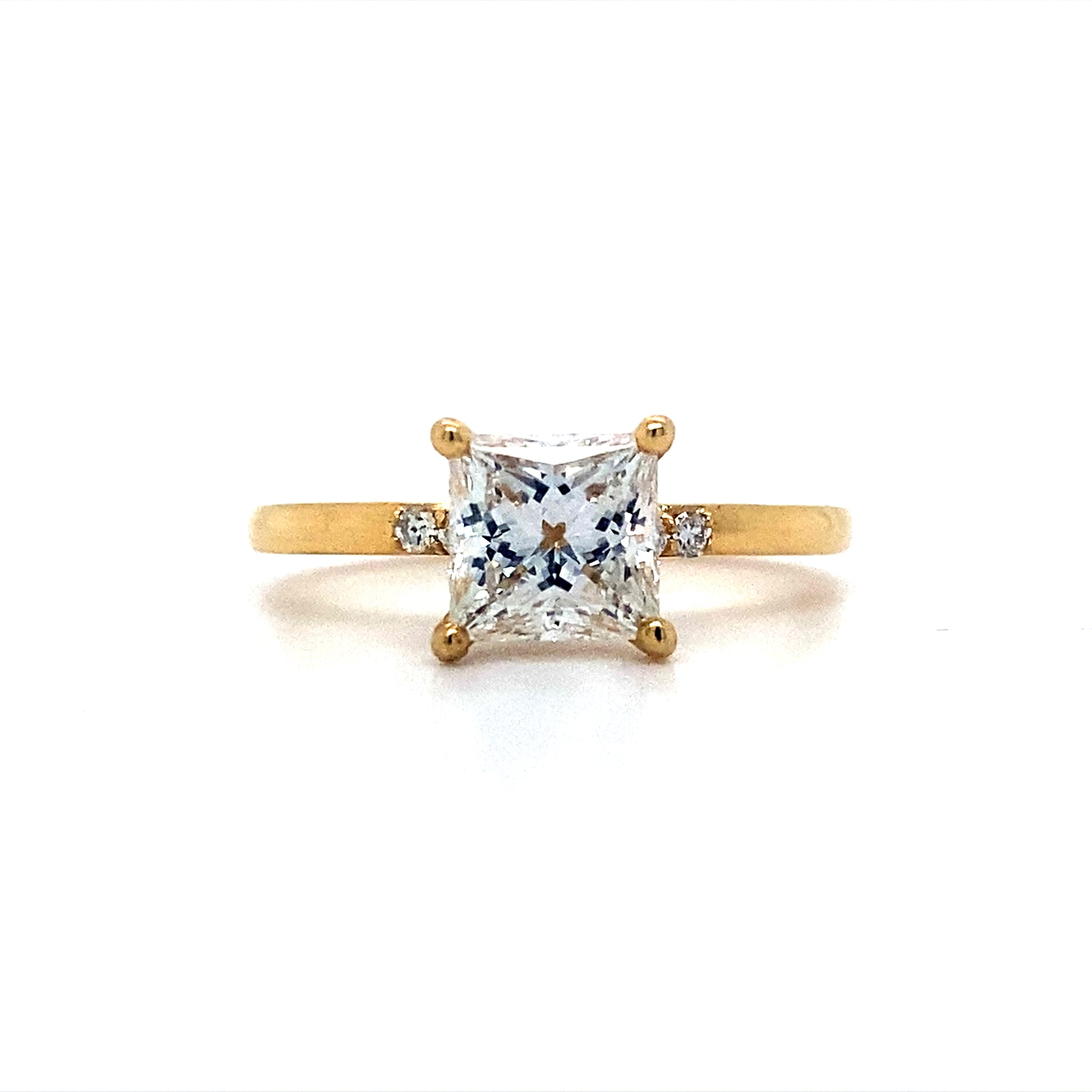 14K Yellow Gold Princess Cut Lab Diamond Engagement Rings 1.2 Ct
