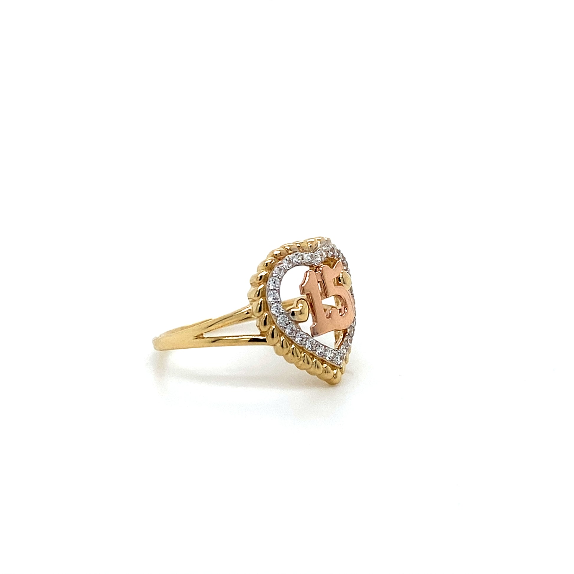 14K Solid 2 Tone Sweet 15 Anos 15 Years Birthday Quinceanera Rings
