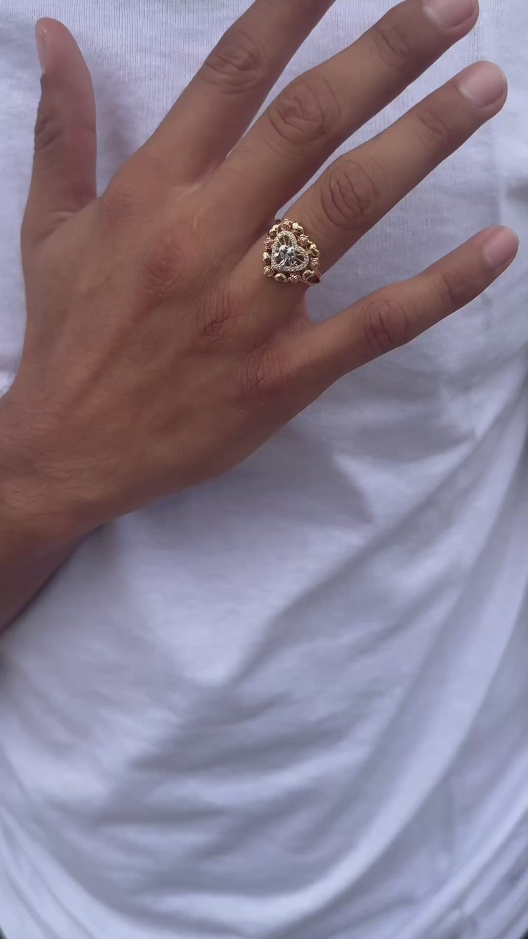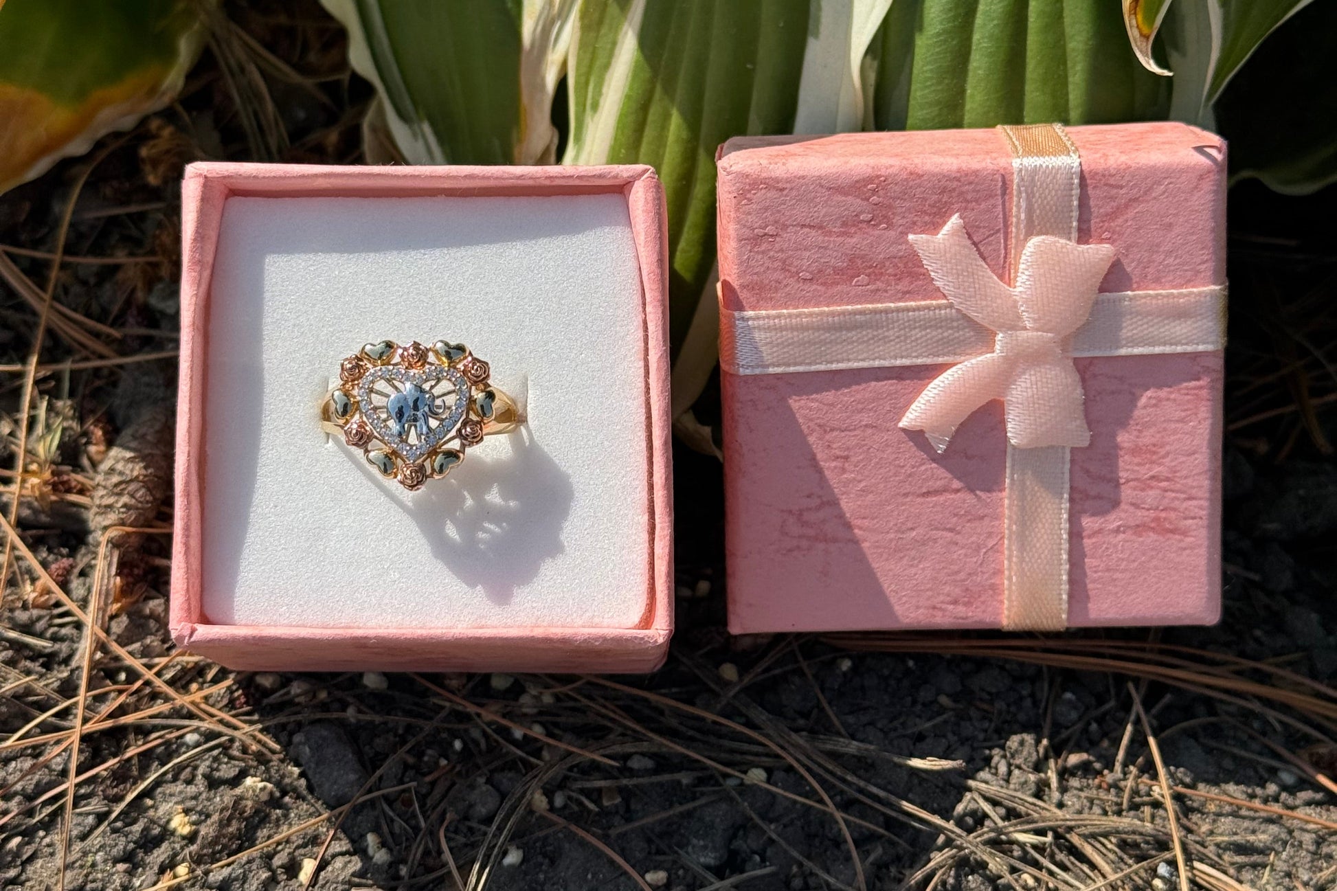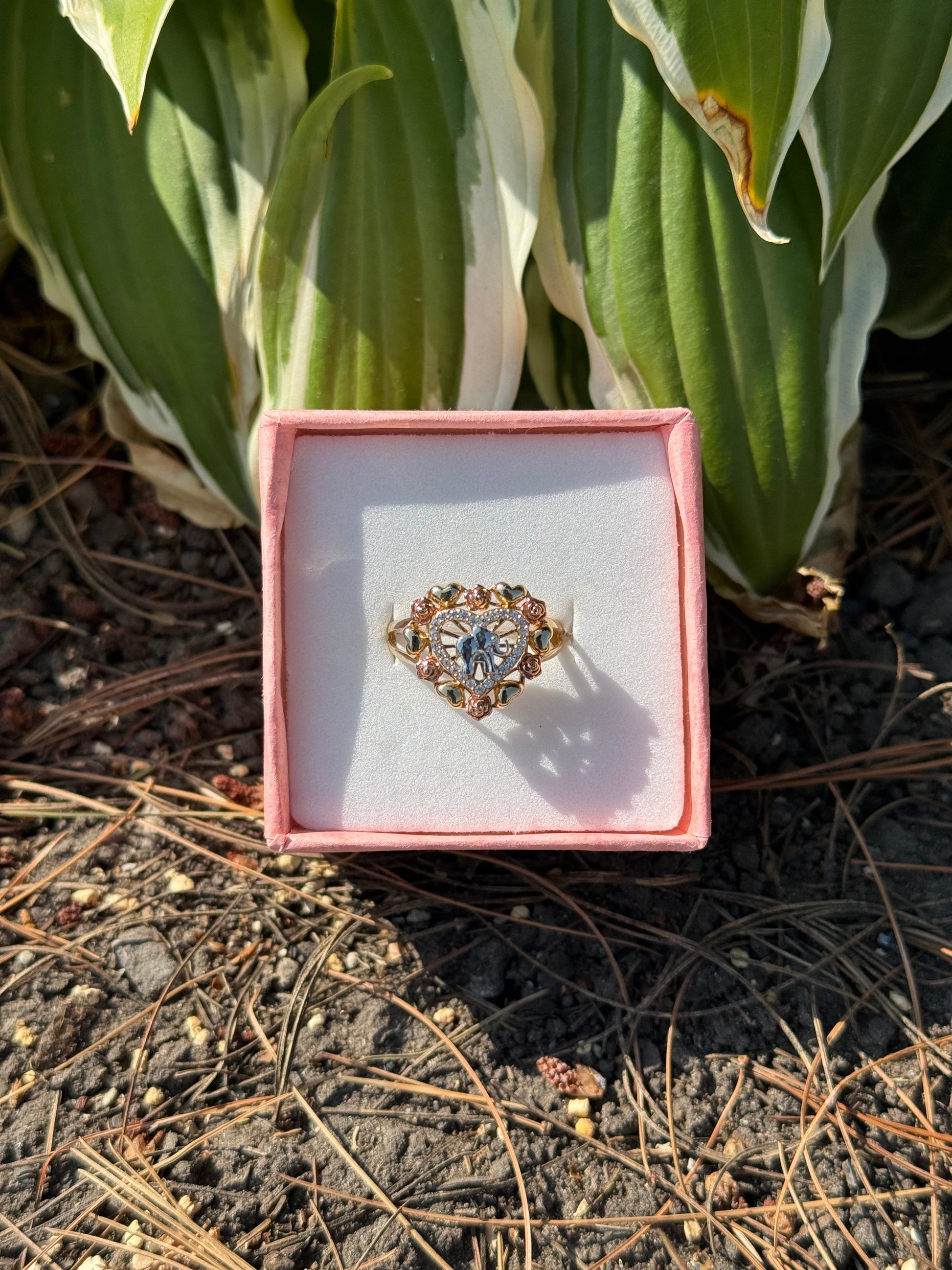 14K Tri Color Elephant Heart & Rose Ring