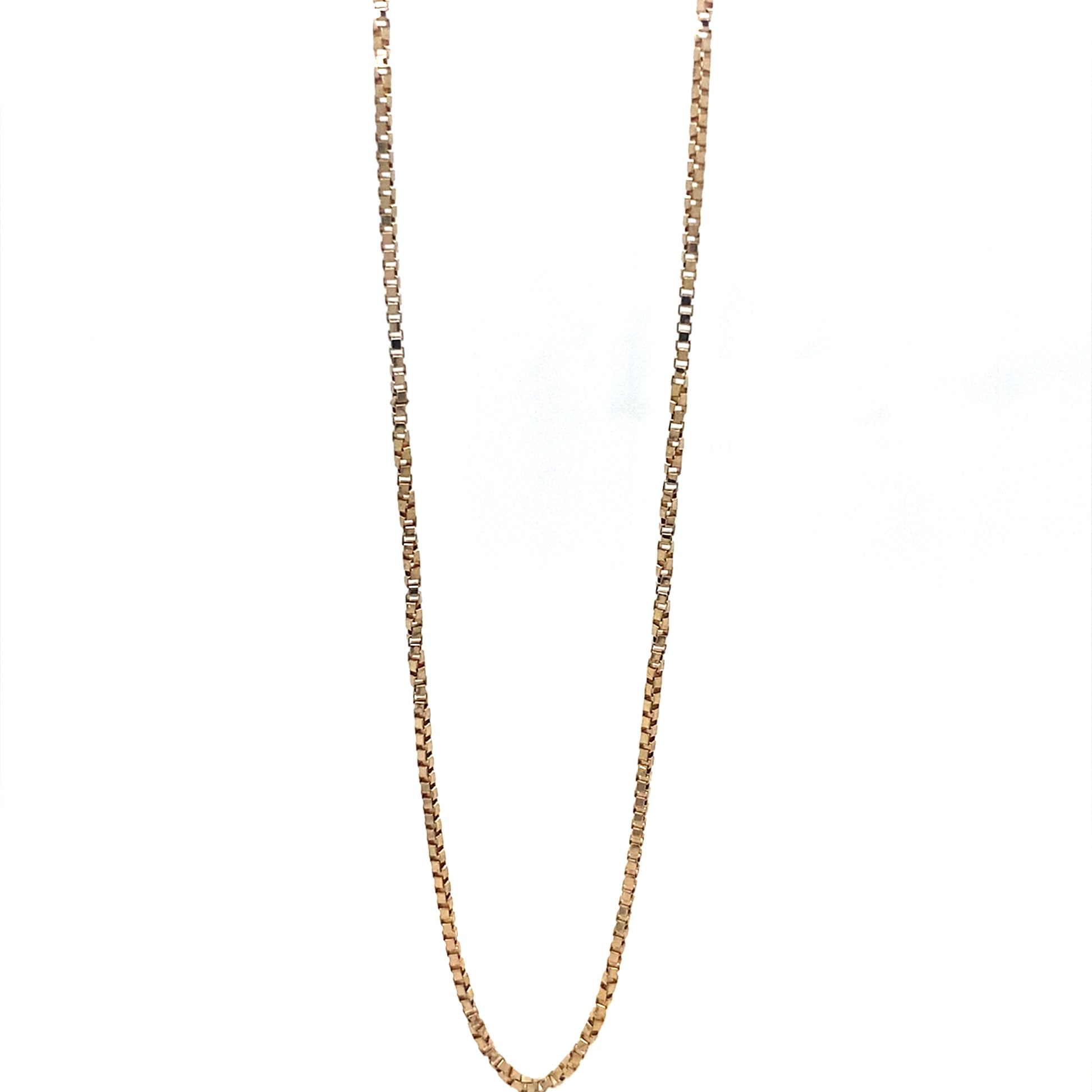 Elegant and minimal with a unique edge—this 14K yellow gold 16” box twist chain is the perfect blend of simplicity and style. Its delicate 1MM width and intricate twisted design catch the light beautifully, adding a subtle shimmer to any outfit. Ideal for layering or showcasing a favorite pendant, this chain is a refined staple made to shine every day.