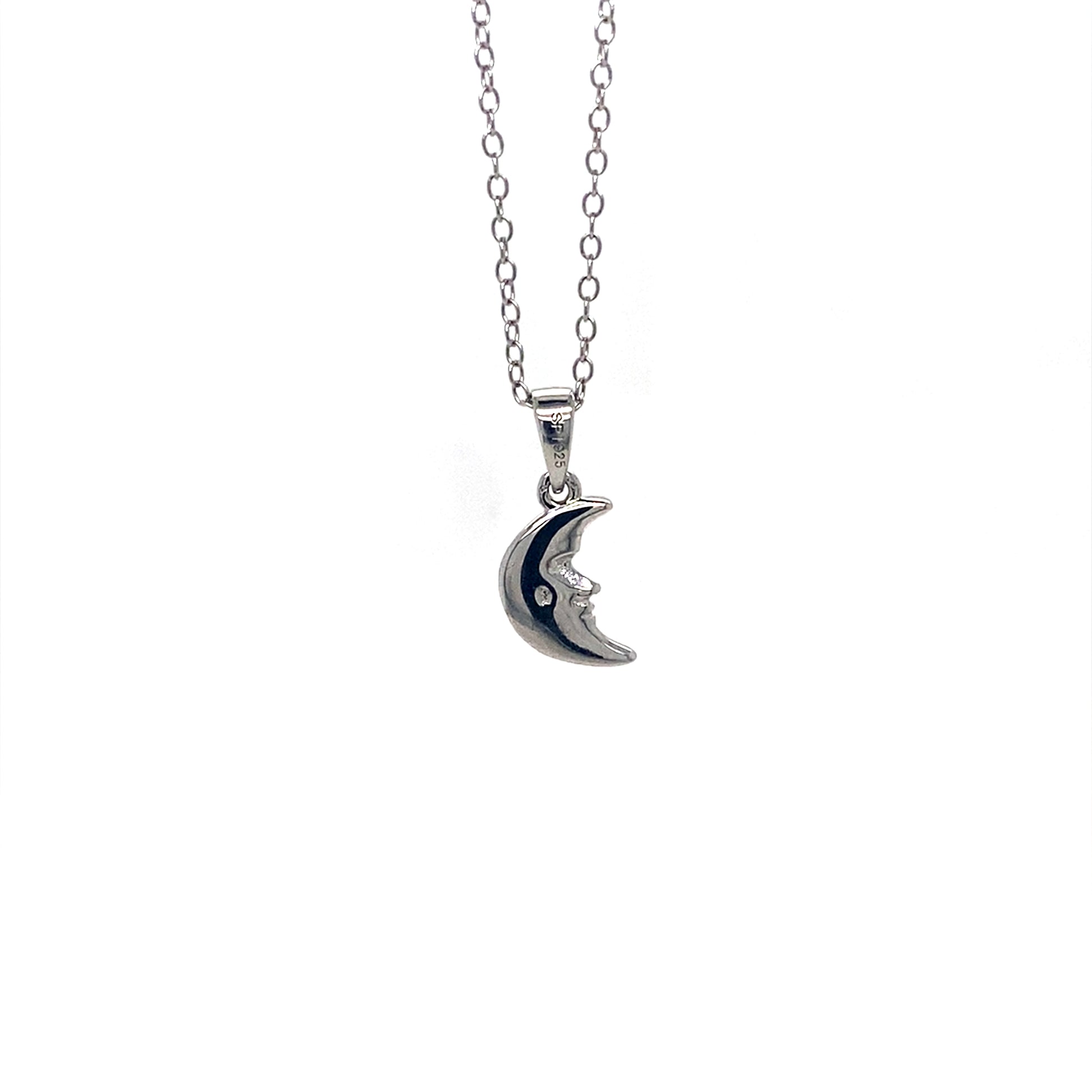 18” Necklace W/ Half Moon Pendant in 925 Sterling Silver