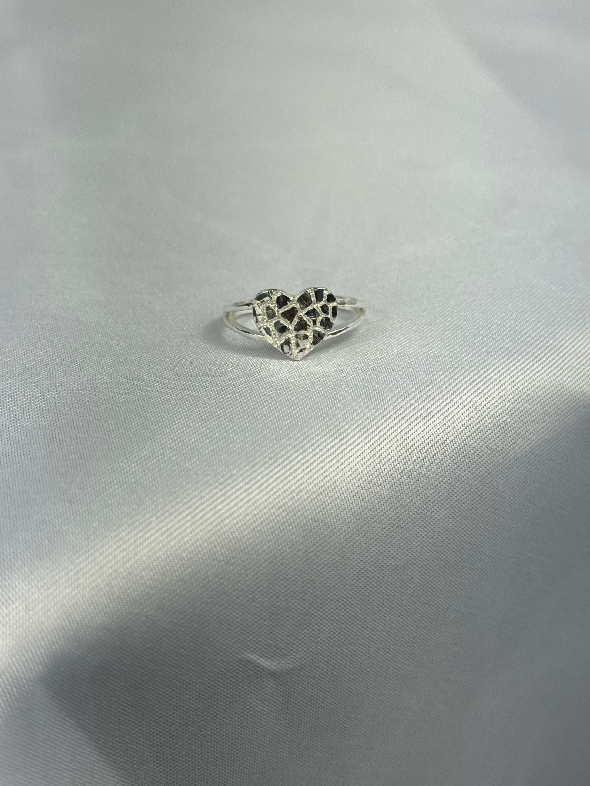 Forged in sterling silver, this ring tells a story of strength and love. The nugget texture reflects resilience and bold character, while the heart at its center symbolizes loyalty and passion. Whether gifted or worn for yourself, it’s more than jewelry—it’s a reminder that love shines even in the roughest places.