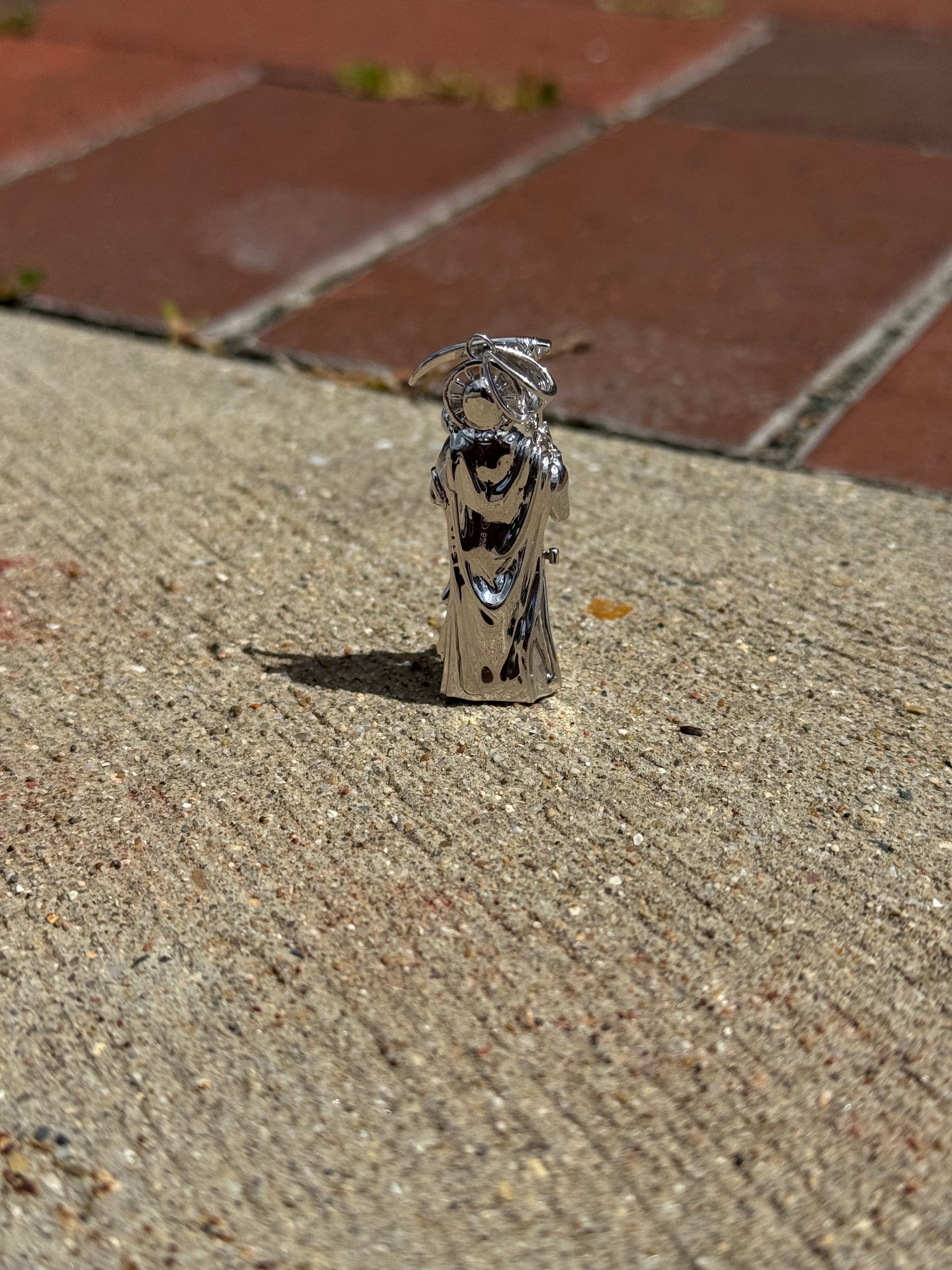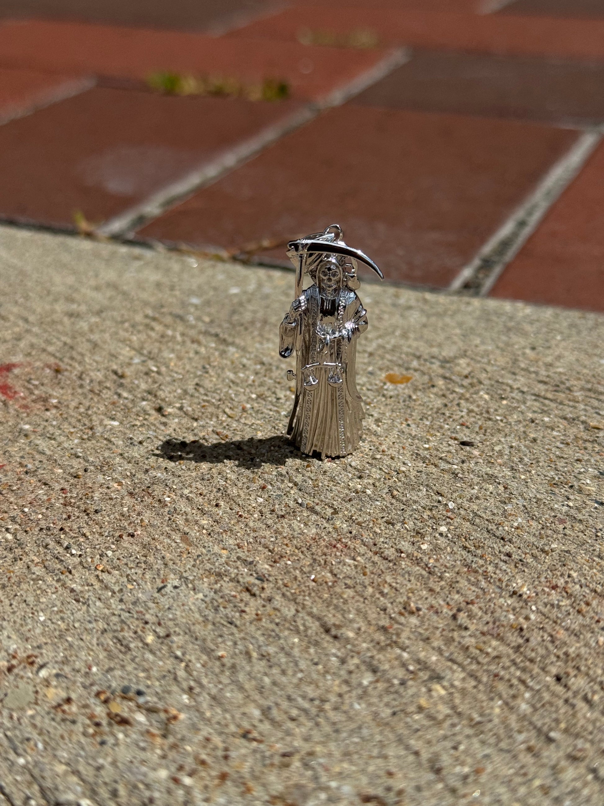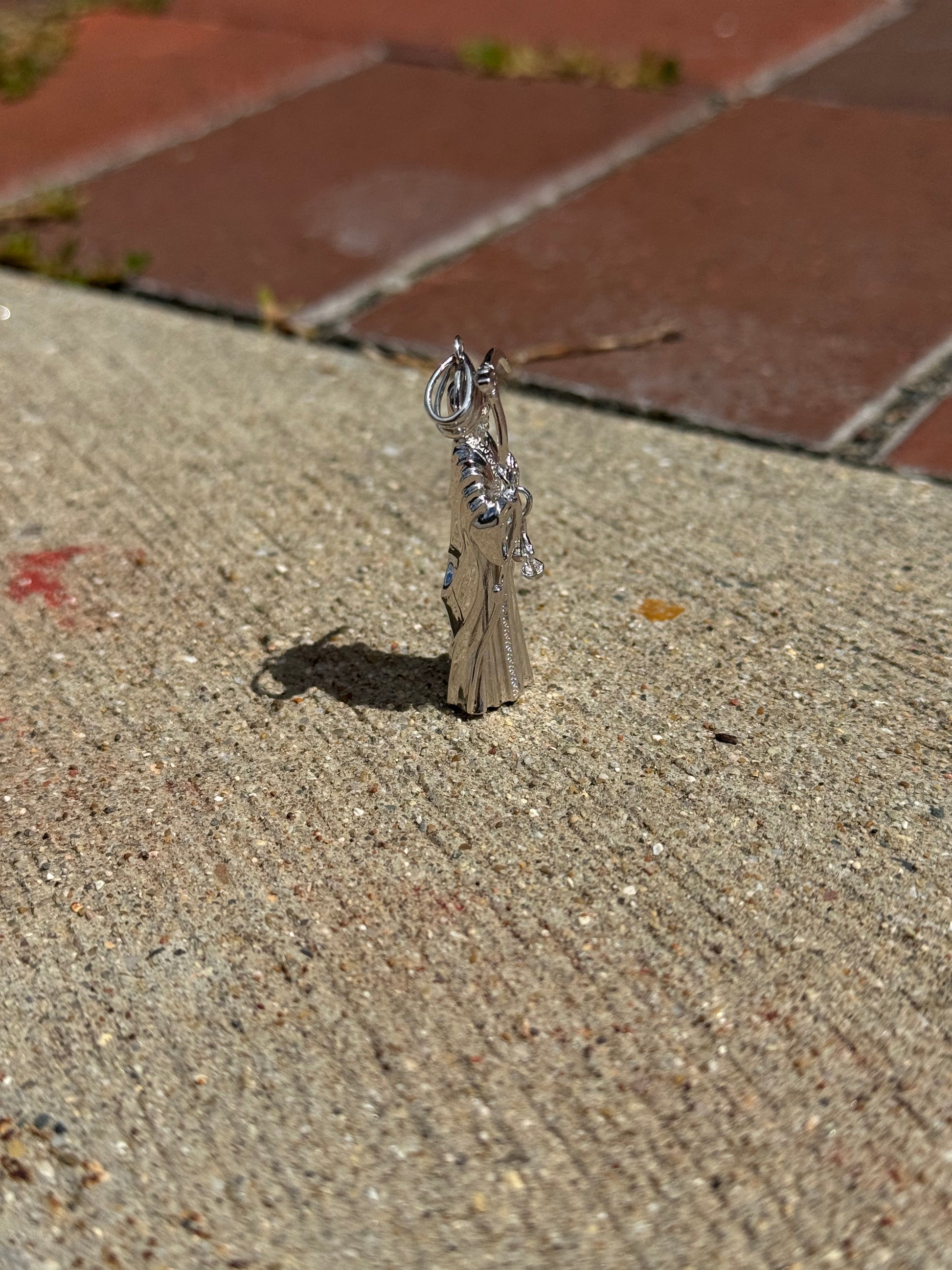 Show your faith in a striking way with our Solid 925 Sterling Silver Santa Muerte Pendant. Expertly detailed with precision-carved features, this piece shines with a high-polish finish that stands out on any chain.