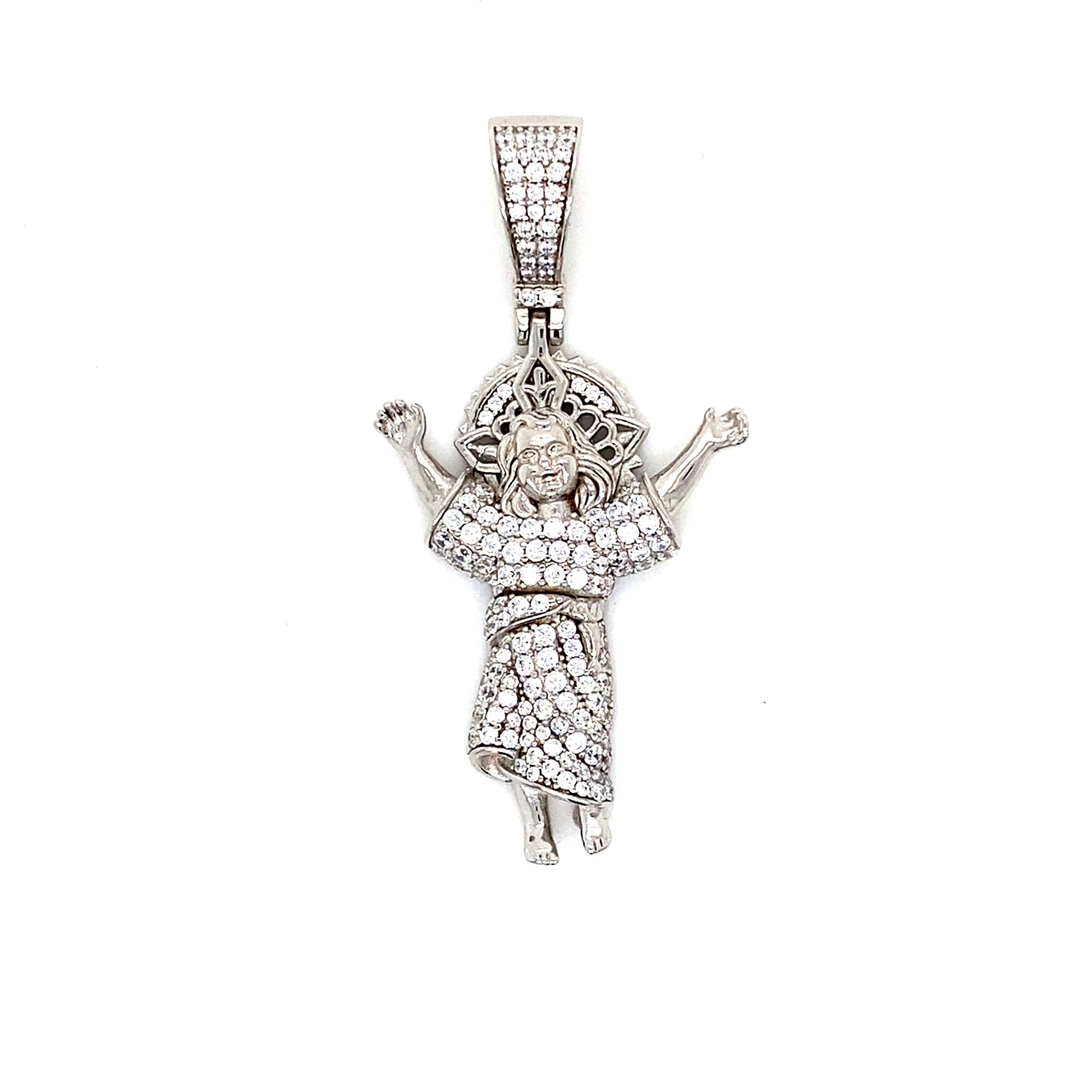 CZ Halo Baby Jesus Pendant In 925 Sterling Silver