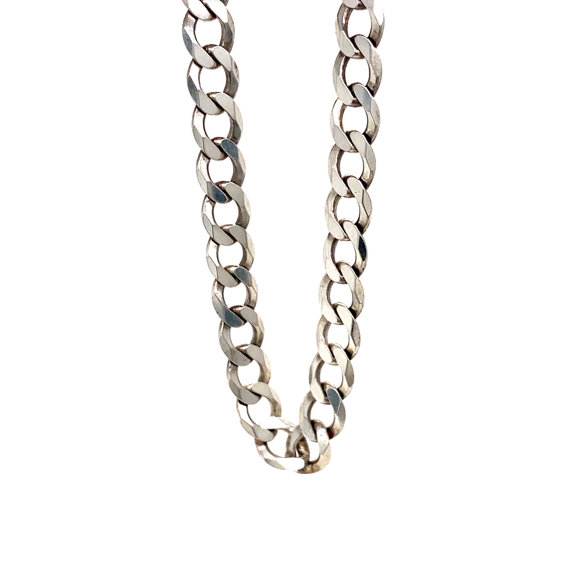 Bold and timeless—this 18” 7MM flat curb link chain is crafted from solid 925 sterling silver, offering a sleek, masculine edge with a polished finish. Its wide, flat links lay comfortably on the neck, making it a standout piece whether worn solo or layered. A classic statement chain that delivers strength, shine, and everyday versatility.